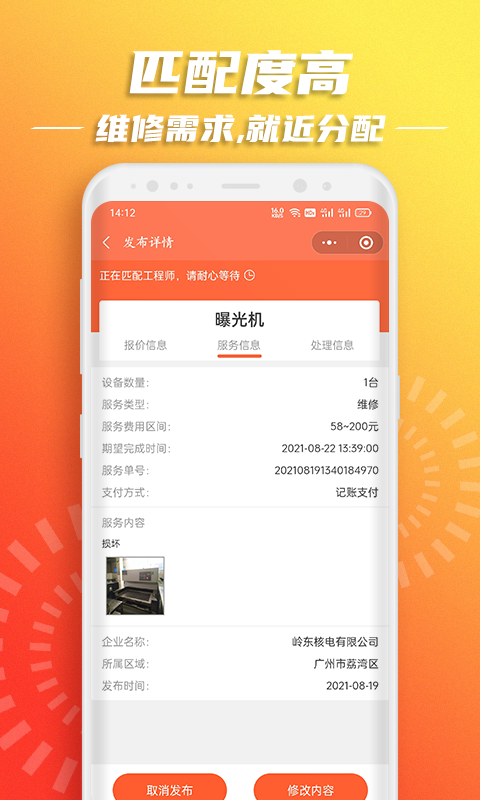 3. 维修师傅匹配:根据设备类型和故障情况,智能匹配合适的维修师傅,快速解决问题。