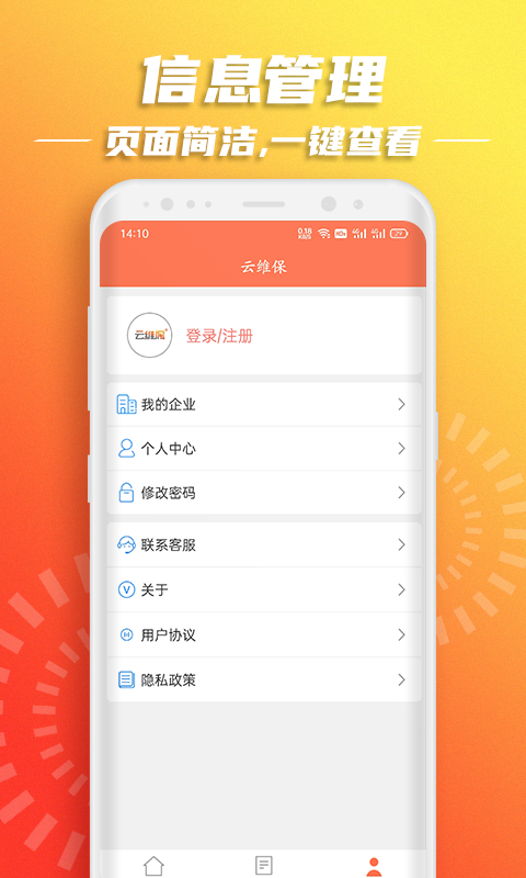 1. 下载并安装云维保APP,打开后进行简单的注册,输入企业信息,完成账户创建。