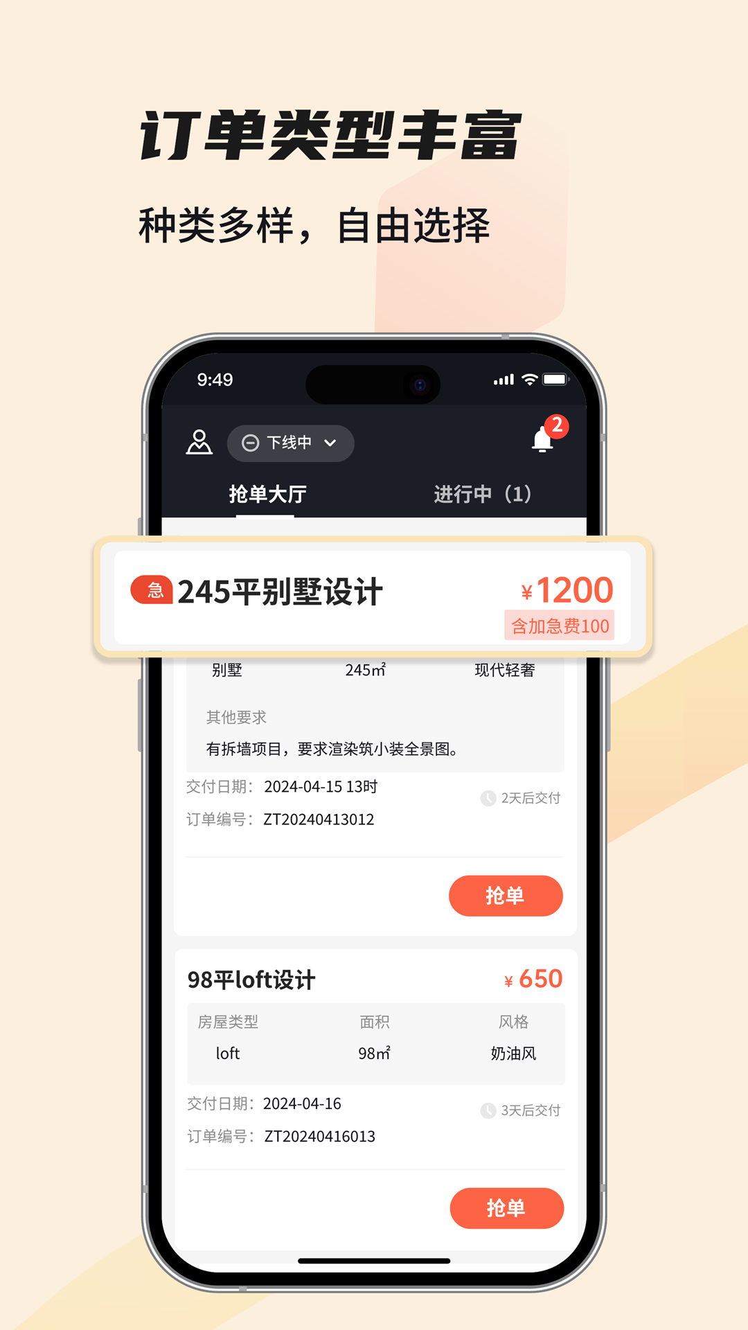2. 提供的订单种类多样,设计师可以根据自己的专长选择不同类型的项目。