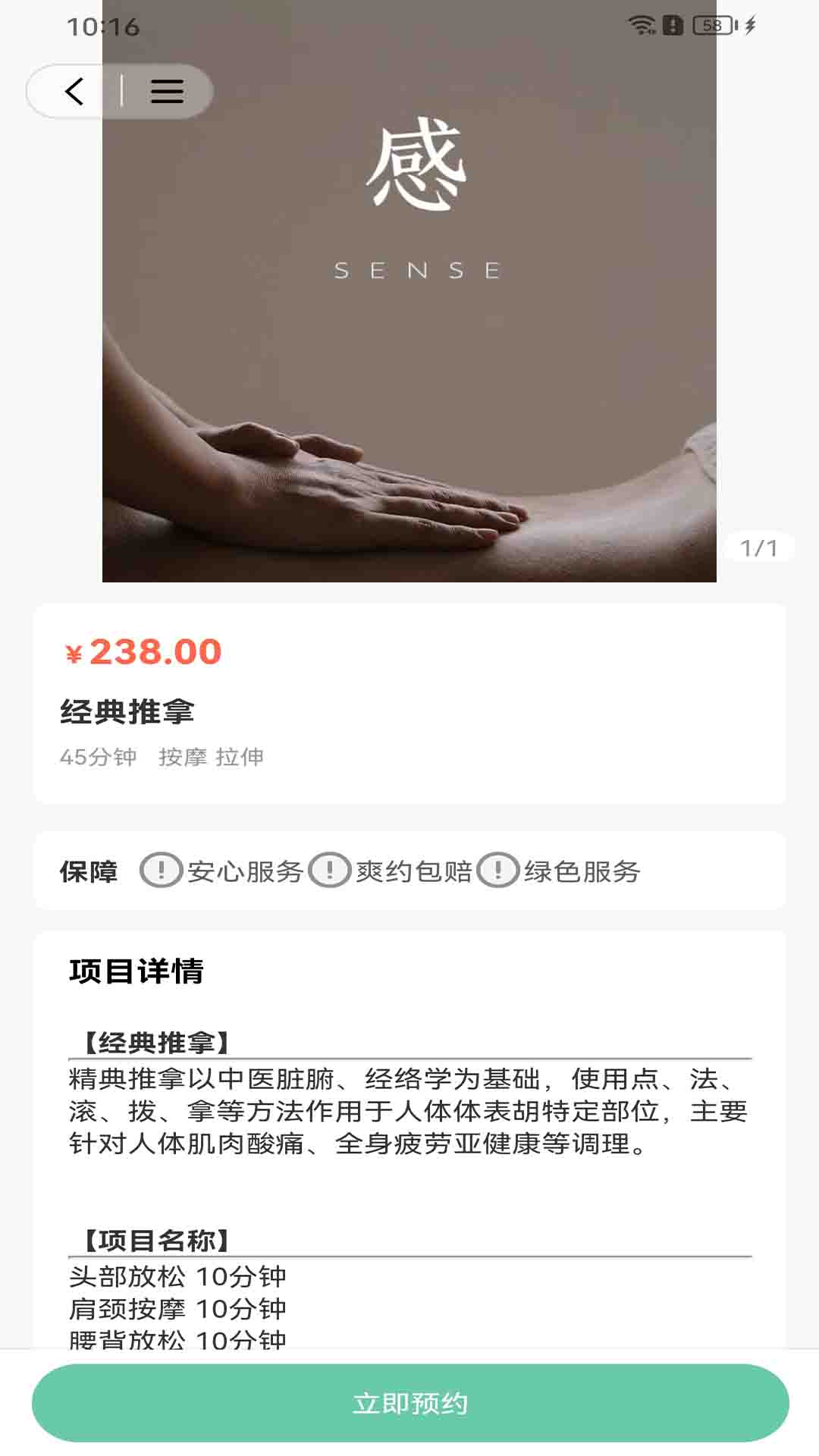 3. 在主界面选择预约服务,浏览可用的按摩项目。