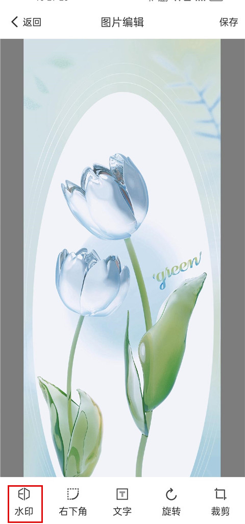 调整满意后,点击【保存】,即可将添加水印的照片存入手机相册。