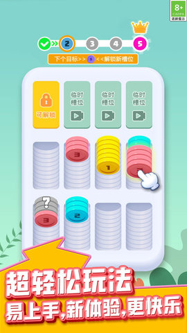 随着游戏进程的推进,排序解压神器还会引入更多新的元素和机制,让游戏变得更加丰富多彩。玩家不仅可以体验到传统排序游戏的乐趣,还能够感受到游戏带来的创新和惊喜。新的颜色和临时槽位的解锁将为玩家提供更多策略选择,让玩家不断思考和挑战自己的排序技巧,保持游戏的新鲜感和吸引力。