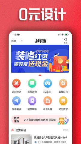 到家边是一款专注于家居家装的应用,旨在为用户提供全面、便捷的装修服务。这个平台不仅涵盖了装修设计、材料选购,还包括工人管理和家居定制方案等多种服务,致力于满足不同用户的家装需求。无论是想要装修新家,还是对家居环境进行改造,到家边都能为您提供一站式解决方案,让每一个家庭都能轻松享受舒适的居住体验。