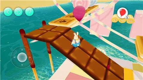 2、玩家需要控制一个神奇的小兔子,在气球道具的帮助下自由冒险,并不断触发机关,从而通过关卡。