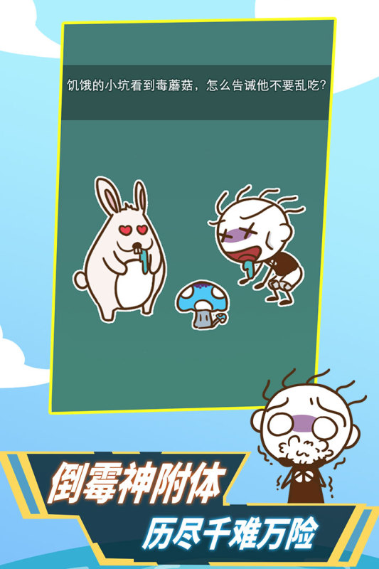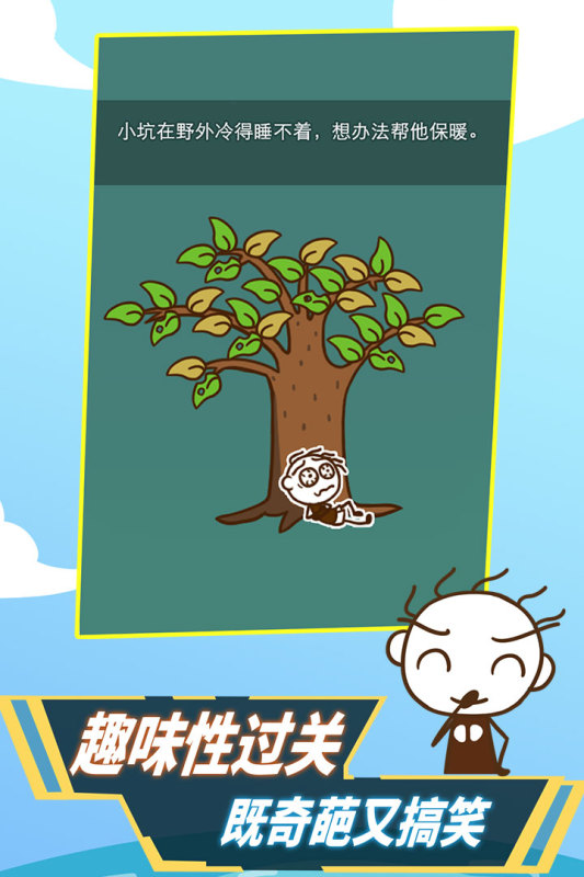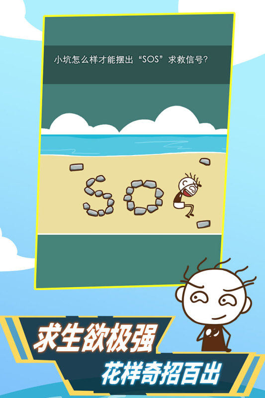 史小坑活下去是一款休闲解谜游戏,玩家将跟随主人公史小坑的冒险旅程,体验一场充满幽默与挑战的生存之旅。故事的开端,史小坑不幸被困在一个荒岛上,这里充满了各种意想不到的倒霉事件。他面对的不仅是缺水断粮的问题,还有来自野人的威胁和其他各种搞笑的生存难题。每一关都需要玩家用智慧和创意去解决问题,找到独特的过关方法,才能帮助史小坑在这个荒岛上生存下去。游戏的玩法以问答和操作相结合,极具趣味性,让人忍俊不禁。
