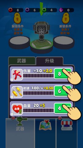 3、通过升级子弹的生产速度,玩家能够在短时间内积累大量弹药,形成强大的火力输出。