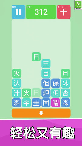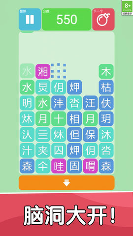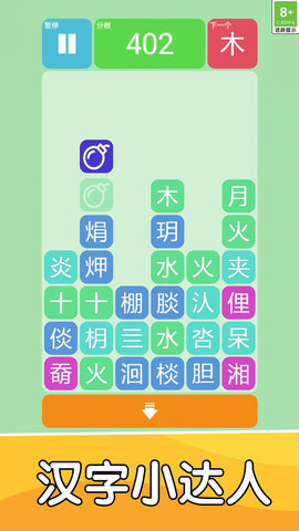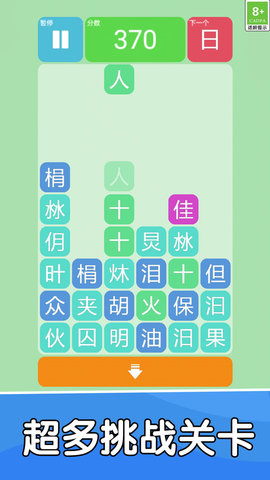 汉字小达人是一款独特的模拟汉字合成小游戏,为玩家提供了一种全新的汉字学习体验。玩家需要不断合成汉字,通过点击方框左右边来调整文字下落位置,点击方框底部的向下箭头可以加快文字下落的速度。这种独特的玩法不仅考验玩家的反应能力和手速,还能够在娱乐的提升玩家对汉字的识别能力和记忆能力。
