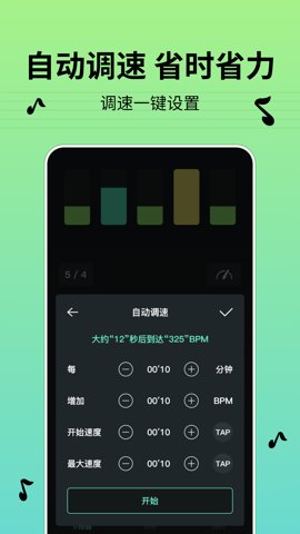 4、支持自动调速模式,设定节拍的加速和减速,帮助自己逐步适应更快的节奏。