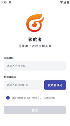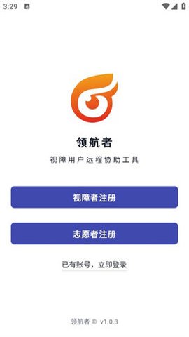 1、打开视觉领航者应用,选择适合的账号进行登录,视障者和志愿者的界面会有所不同。
