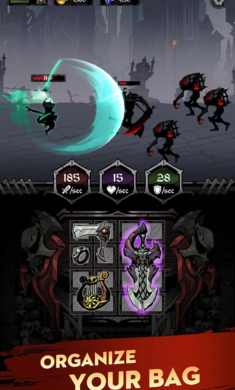 遗物背包暗影猎手是一款充满策略与挑战的2D益智闲置游戏,玩家将化身为一名暗影火柴人战士,携带着充满潜力的武器背包,进入激烈的战斗。游戏的核心机制在于通过合并与升级武器,玩家可以不断提升自身实力,创造出更加强大的武器,来应对一波又一波的敌人。每一个决策都将影响战斗的结果,玩家需要在战斗前仔细思考,合理配置和升级武器,以释放出巨大的战斗潜力。