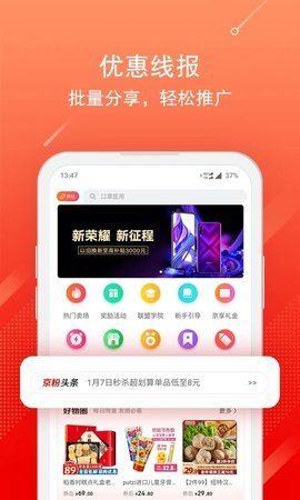 1. 转链功能:京粉转链实现将京东商品转为适配各大社交平台的分享链接,一键分享,轻松下单。