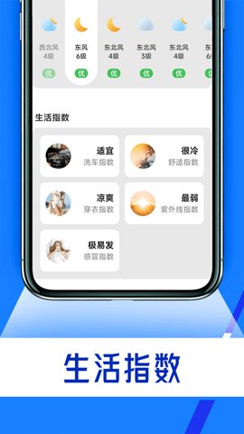 2、详细的生活指数信息,涵盖紫外线强度、空气质量等,帮助用户合理安排日常活动。