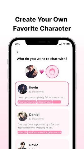 1、首次进入应用后,从角色画廊中选择一个吸引你注意的虚拟伴侣。