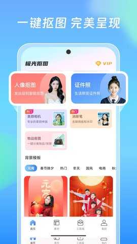 极光抠图是由杭州冬恩网络科技有限公司倾力打造的一款专为手机用户设计的免费抠图软件,帮助用户轻松进行照片编辑、人物美化及证件照制作等多种操作。借助先进的智能AI技术,在几秒钟内完成复杂的抠图任务,适合任何需要处理照片的用户,尤其是那些希望提升照片质量和个性化表现的人。