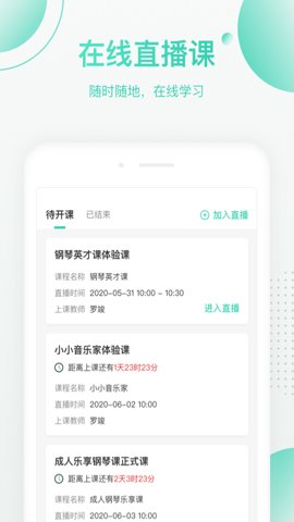 绿叶帮是一款综合性音乐学习和教学软件,提供在线教育和音乐教学app应用。的目标是帮助用户学习更多相关知识,开阔视野。在平台上,有大量的教学案例可供用户参考和挑战。通过提供互动流程和最新的直播课程,帮助用户获得更好的乐理学习支持。