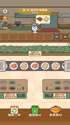 火锅消不停游戏设置了各种关卡和挑战,玩家需要在规定的步数内完成消除任务,随着关卡的不断提升,游戏难度也会逐渐增加。玩家需要灵活运用自己的消除技巧和策略,才能顺利通关并解锁更多火锅新食材。