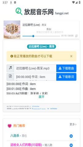 3、在放屁音乐网中,轻松下载自己喜爱的歌曲,确保即使在没有网络的情况下也能随时听到最喜欢的音乐。