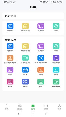 4、考勤管理模块,学生可通过APP进行签到和请假申请,教师可以轻松记录考勤数据,提升管理效率。