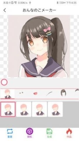 2、作品详情页面提供重置、随机和生成三个核心功能按钮。