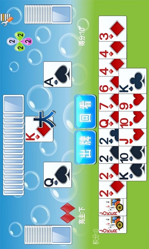 拖拉机升级单机版是一款休闲游戏,不需要联网,玩家可以随时随地享受游戏的乐趣,在家里还是在旅途中,都可以轻松上手。每局游戏的发牌都是随机的,确保了每位玩家都能在公平的环境中竞争。游戏界面简洁明了,操作也非常简单,适合各种年龄段的玩家。无论是新手还是老玩家,都能很快掌握游戏规则。