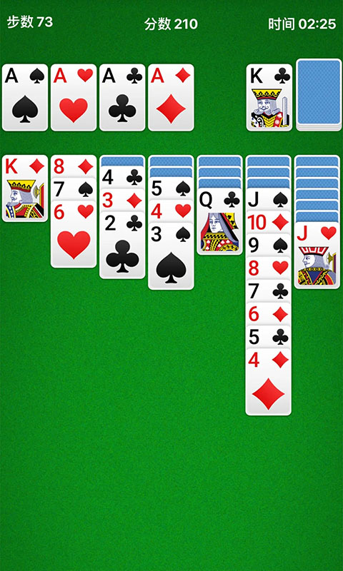 在Solitaire模式中,玩家需要将牌按照数字和花色的顺序进行排列,利用已有的牌进行合理的移动。游戏开始时,牌堆会随机分配,玩家需要通过策略思考如何将所有牌归位。