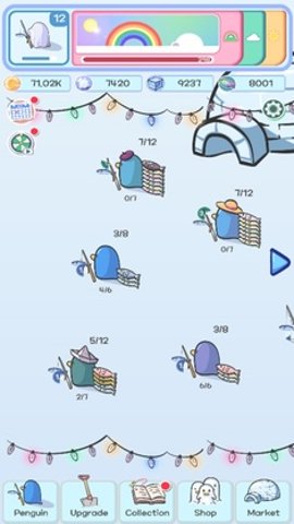 玩家可以通过不断升级设施和雇佣员工,提升自己的经营能力。每个企鹅员工都有不同的技能,合理搭配可以让经营更加高效。