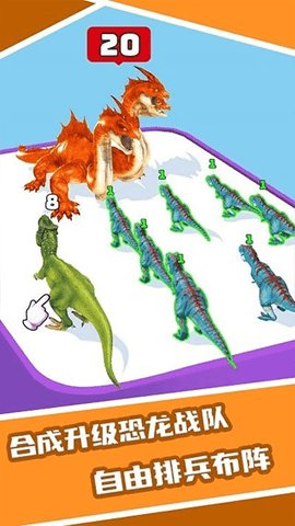 1、为了赢得这场战斗,你需要使用你的策略来在战场上合并恐龙,不断地升级你的恐龙。