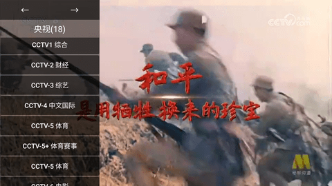 3、在播放界面中,点击屏幕任意位置调出控制菜单,然后在左侧区域上下滑动,可浏览其他央视直播频道;若需查看更多频道,点击图中圈出的箭头按钮,即可翻页查看下一批频道列表。