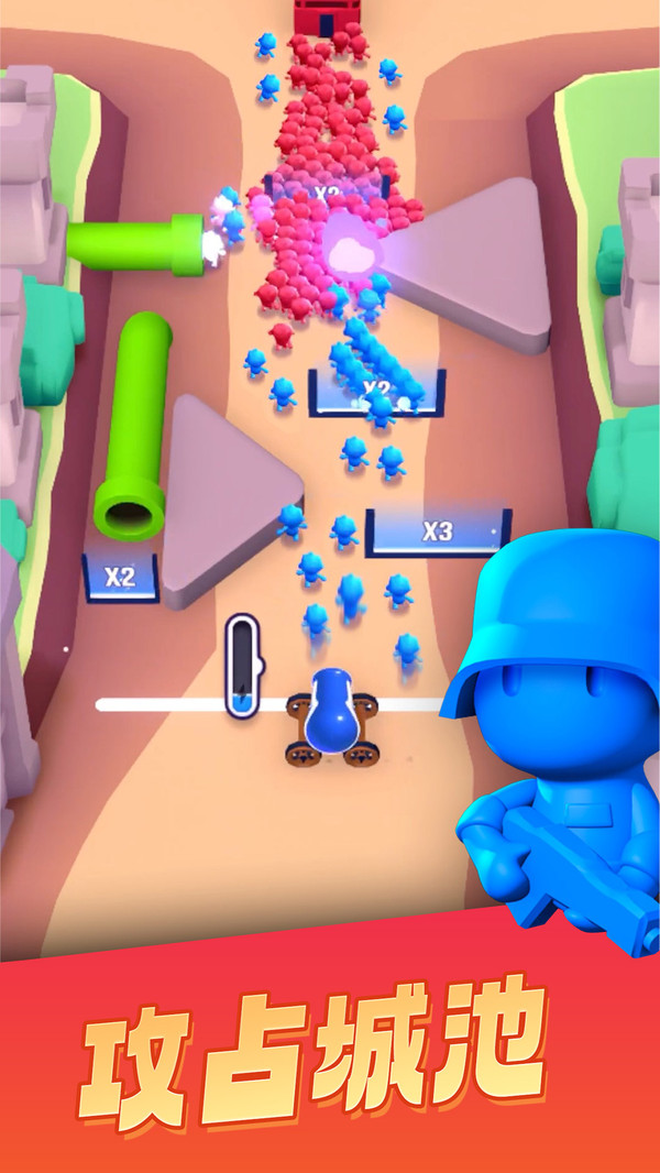 2、在战斗开始后,玩家需要迅速喷射士兵并选择经过的倍增门。不同的倍增门会带来不同的士兵增益,合理选择可以帮助玩家在战斗中迅速壮大自己的军队。
