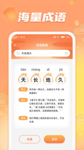 1、成语字典功能强大,涵盖各种类型的成语,玩家可以快速查询成语的出处和释义,帮助更好地理解和记忆。