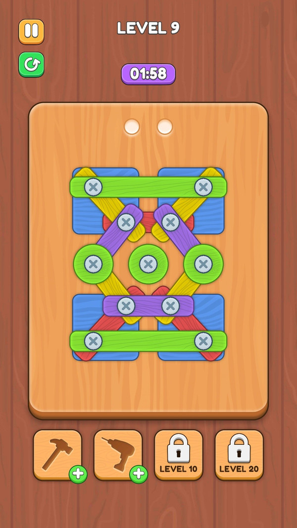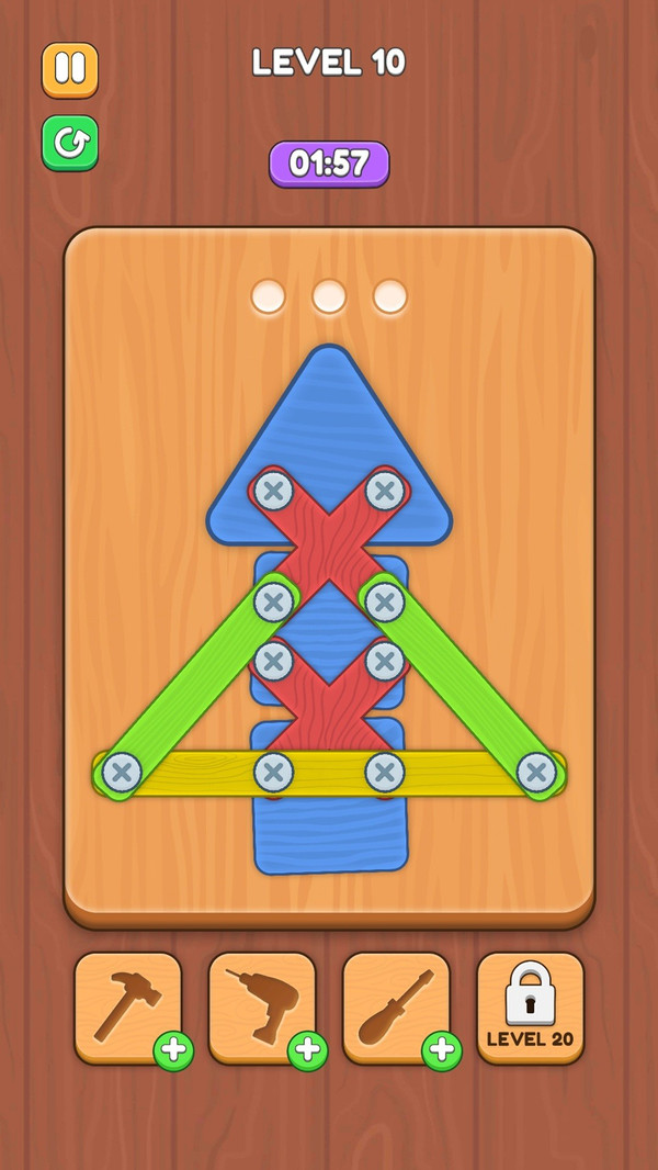 2、没有时间限制,您可以随心所欲地探索和尝试,享受每一次螺丝解锁带来的成就感,完全不需要担心时间的压力。