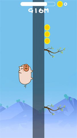 1、游戏采用了独特的跳跃机制,玩家只需按住屏幕即可让小猪壮壮向上跳跃,松开则向另一侧移动,简单的操作带来流畅的游戏体验。
