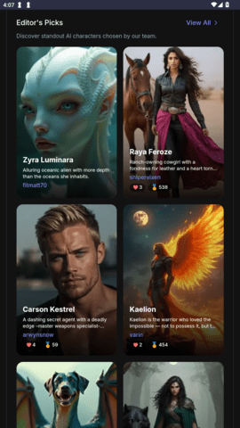1、平台汇集了众多精心设计的虚拟角色,每个角色都具有鲜明的个性特征和专属对话风格,让每次交流都充满新鲜感。