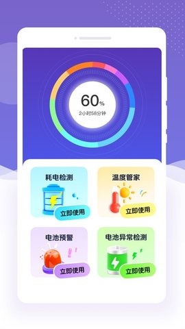 闪星充电助手是一款专业的电池管理工具,能够实时监测手机电池的各项关键指标,包括电量消耗情况和温度变化趋势。工具运用先进的算法模型对电池续航时间进行科学预测,让使用者能够提前了解剩余可用时长。当检测到电池温度出现异常波动时,系统会立即发出提示信息,确保设备始终处于安全运行状态。还能识别出耗电量较大的软件,并给出相应的优化建议,从而有效维护电池健康状态。