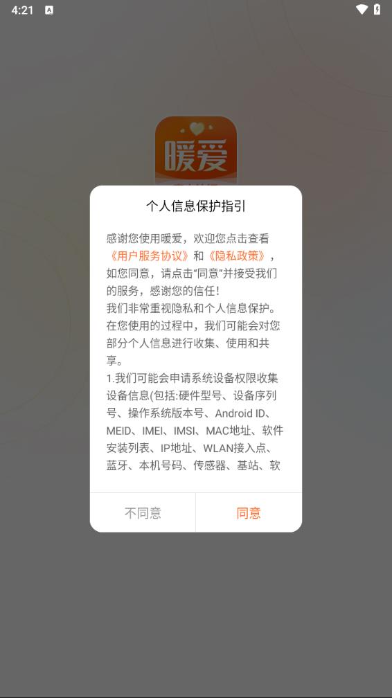1、下载并安装暖爱交友软件,打开应用,进入注册页面。