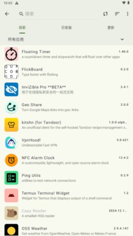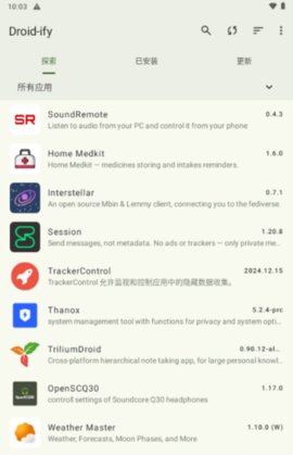 Droid是一款基于F-Droid架构开发的开源应用分发平台,采用Material Design设计语言构建现代化交互界面,在保留原始开源生态的基础上优化了资源加载速度与视觉呈现效果。严格遵循GPLv3开源协议,所有应用均经过数字签名验证,从源头上杜绝恶意代码植入,为安卓生态用户提供安全可靠的应用获取渠道。其资源库每日自动同步全球数十个可信开源镜像站,确保用户能够第一时间获取到最新版本的开源软件。