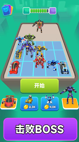 汽车机器人大战游戏是一款极具吸引力的合并类游戏,融合了汽车和机器人的元素,给玩家带来了全新的游戏体验。精美的画面、畅快的玩法、丰富的技能搭配,以及挑战性十足的游戏内容,使得玩家能够尽情展现自己的操作技巧和战术智慧,成为这个战场上的超级英雄。如果你也是游戏爱好者,喜欢挑战自己的操作和思维能力,那么汽车机器人大战绝对不容错过!