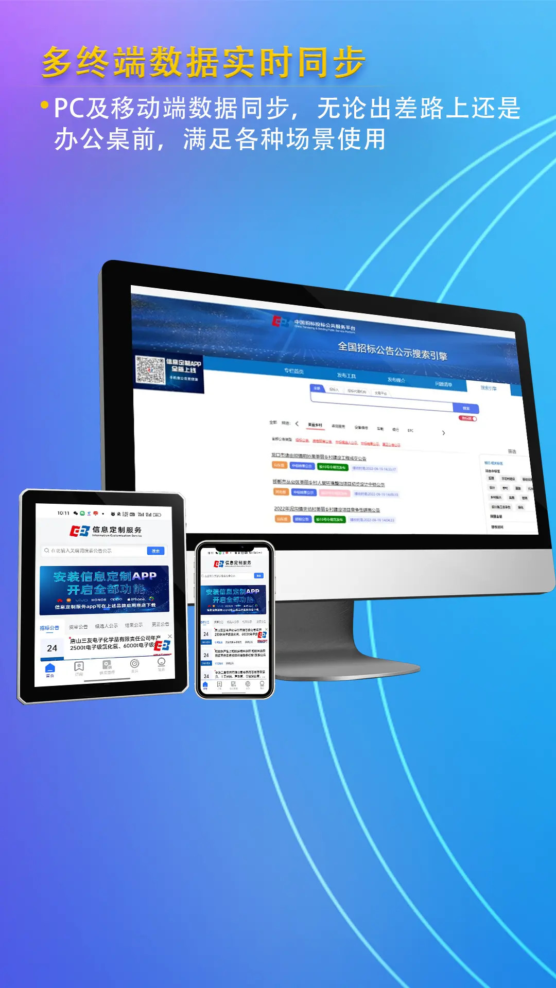 信息定制服务是一款专为投标人和潜在投标人设计的移动端工具,帮助用户便捷地获取招标公告和公示信息。它依托于中国招标投标公共服务平台,确保信息的权威性和全面性。通过轻松查阅招标信息,解决了以往信息获取难、效率低的问题,适合各类用户,尤其是那些希望及时掌握市场动态和招标机会的企业和个人。