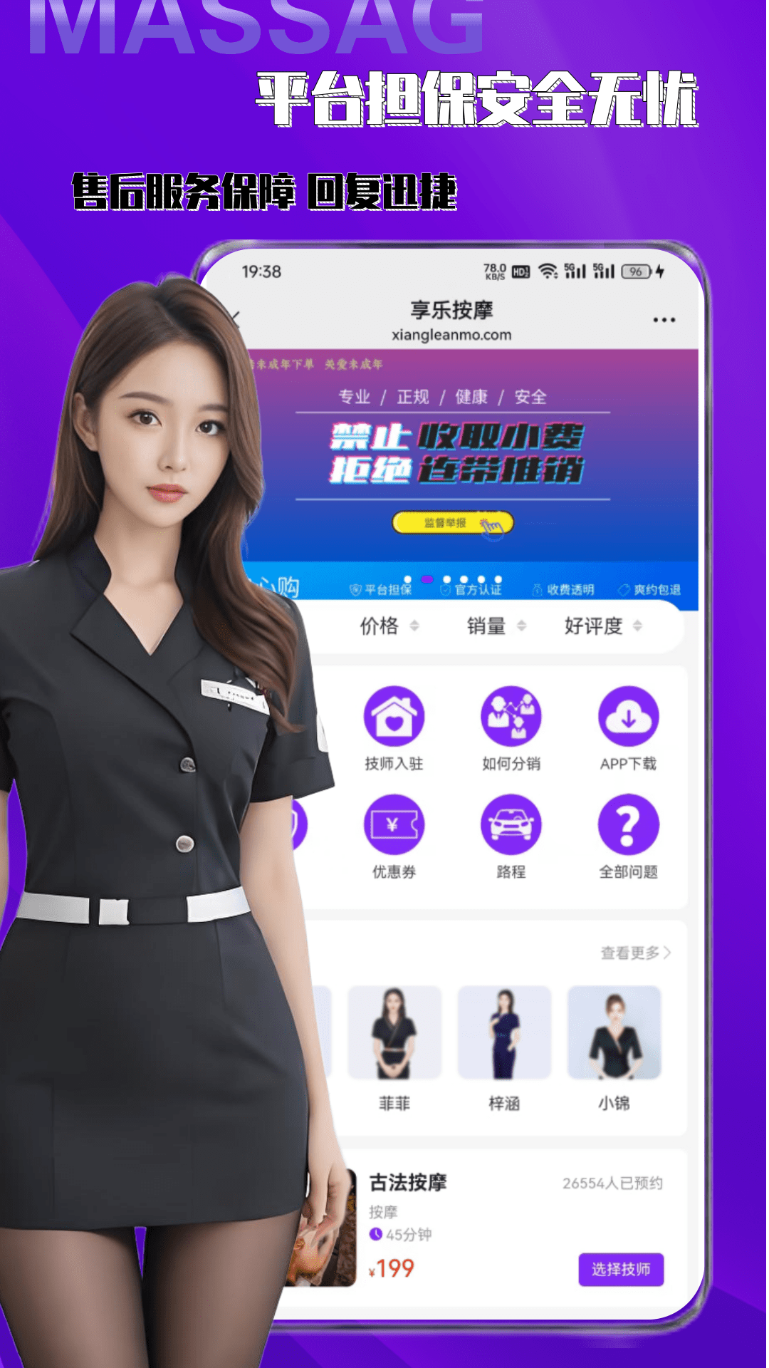 1、平台坚持为用户提供高标准的按摩服务,所有技师均经过严格培训,确保每位客户都能享受到专业的护理体验。