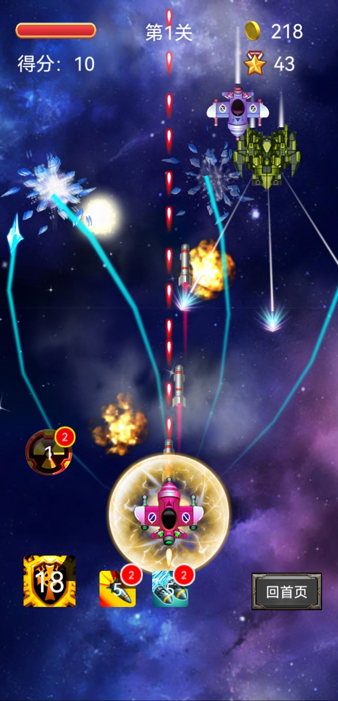 3、游戏中设有多种不同级别的敌机,挑战难度逐渐增加,玩家在不断挑战中提升自己的操作技巧。