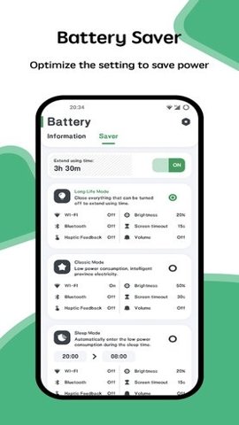 4、电池管家还支持超长待机等多种省电模式,可以管理耗电应用和系统设置,让电池电量更加耐用。