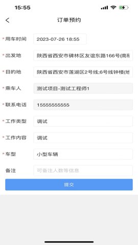 1、支持一键下单,用户只需输入基本信息,系统便可快速生成用车订单,节省时间和精力。