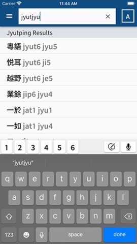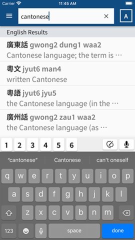 2、在使用过程中,根据自己的需求选择粤语、英语或粤拼/耶鲁拼音进行搜索,极大地方便了不同语言背景的学习者。