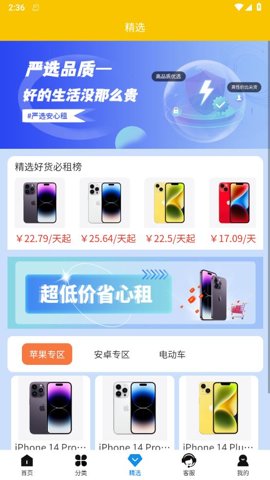 1、平台提供多种数码产品的租赁选择,涵盖手机、电脑、电动车等,满足用户不同的需求。