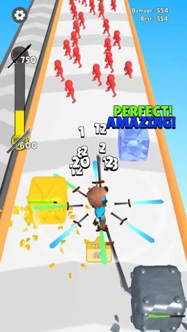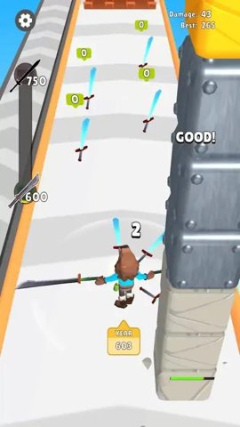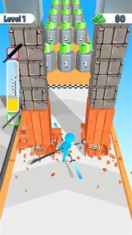 游戏的主要目标是通过砍杀敌人和障碍物来获得金币,金币可以用于角色的解锁和武器的锻造。每次成功击倒敌人,玩家的武器会自动进化,变得更加强大。随着游戏的进行,关卡的难度也会逐渐增加,玩家需要不断提升自己的技能,才能在更高难度的关卡中生存下来。