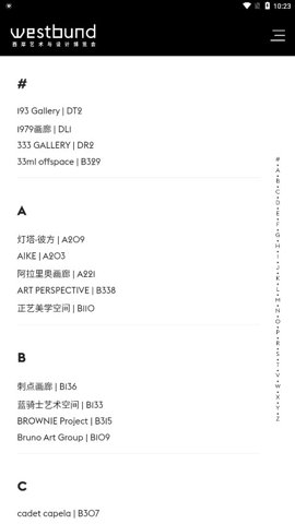 2、作为上海西岸艺术与设计博览会的官方信息发布平台,Westbundapp提供了包括相关展出信息、参展画廊、参展艺术家、相关论坛等内容。
