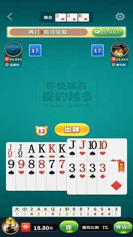 2、游戏中需要根据牌型大小和对手出牌规律制定策略,增加了游戏的趣味性和挑战性。