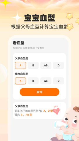 4、根据父母的血型进行宝宝血型的预测,提供科学依据,帮助父母更好地了解宝宝的遗传特征。