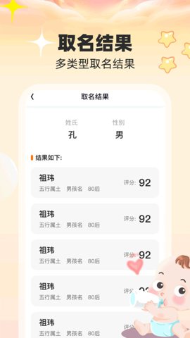软件内置运势占卜功能,帮助新手爸妈了解宝宝未来的运势,为取名提供更多的参考依据,让名字更具吉祥寓意。