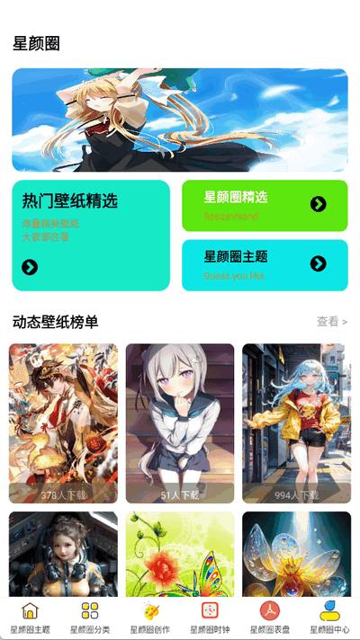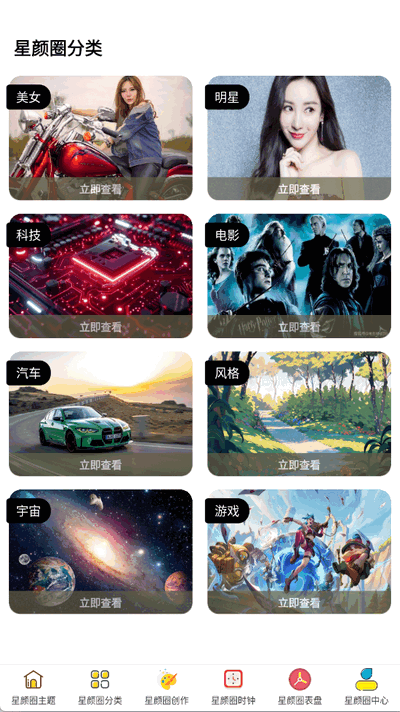 1、下载并安装星颜圈,打开后会进入主页,看到多种主题的壁纸展示。